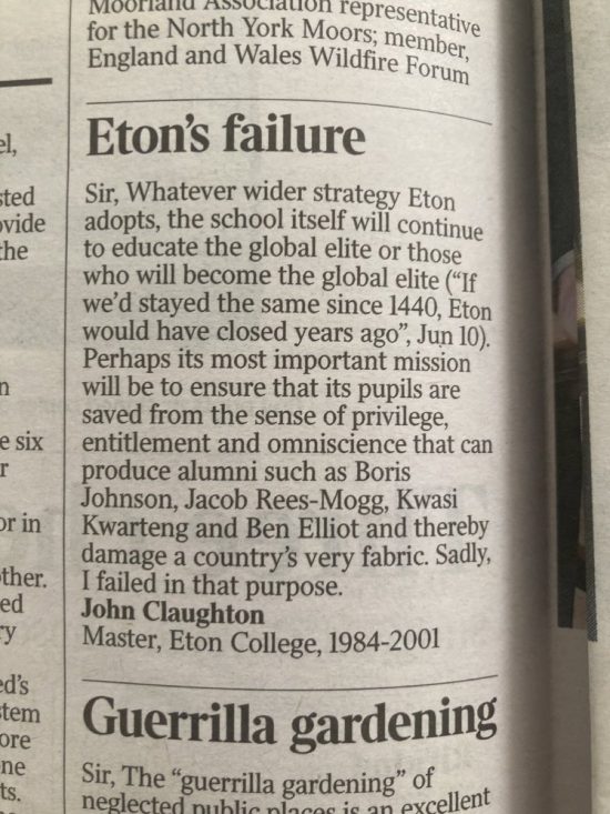 This letter was in The Times this morning: