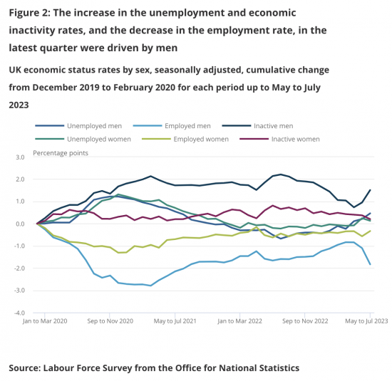 It seems that male unemployment has risen significantly. That. of course, is what the Bank of England wanted: it thinks rising unemployment will curb inflation.