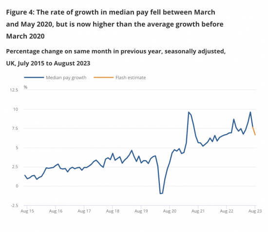 That said, provisional data suggests that the rate of increase in pay is also falling - which is especially worrying as that will leave people well behind their pre-inflation earnings: