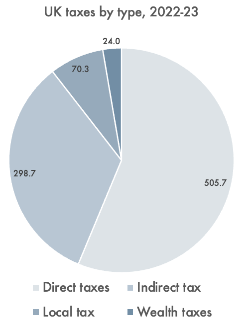 Few of our taxes are charged on wealth. Both inheritance tax and capital gains tanks could be described as direct taxes, however, they might be better to described as taxes on either wealth, or income derived from wealth.
