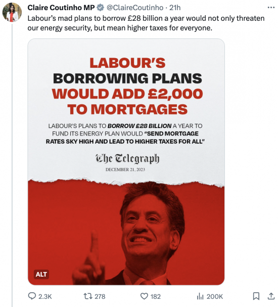 Claire Coutinho MP, who was until recently Cheif Secretary to the Treasury but is now at Energy, posted this on Twitter yesterday: