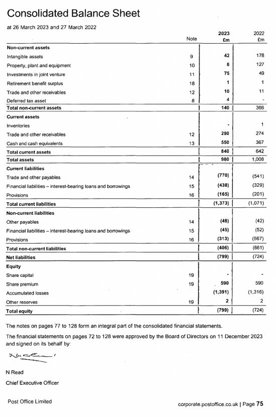 For obvious reasons, I had a quick look at the accounts for the Post Office this morning. This is the latest balance sheet: