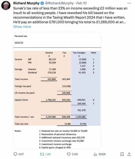 I know many readers of this blog do not like Twitter, or X. But it still has the power to deliver. Two of my Tweets on Saturday got very good traffic. One was on Rishi Sunak's tax return: