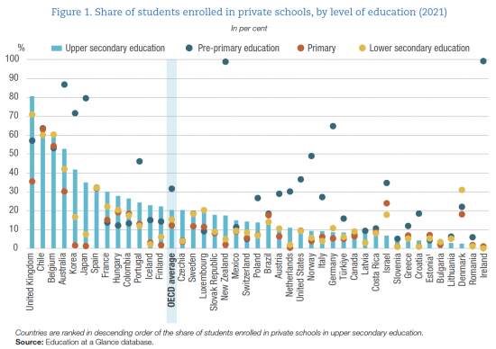 You will note that the UK is the outlier on the left-hand side of the chart, with the majority of education in this country being provided by what the OECD considers to be private-sector educational institutions.