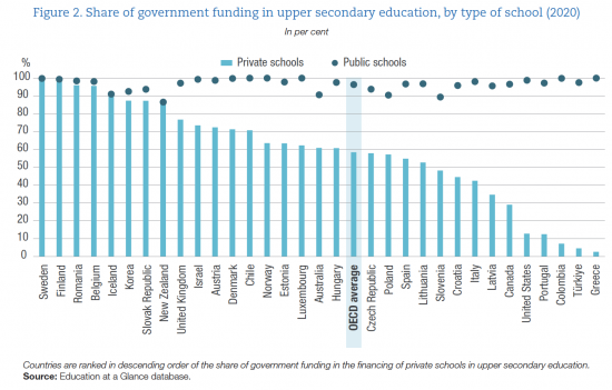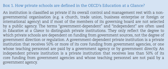 I have just noticed a new report published by the Organisation for Economic Cooperation and Development ('OECD') in January this year on the relative roles of state and private education in OECD member states.