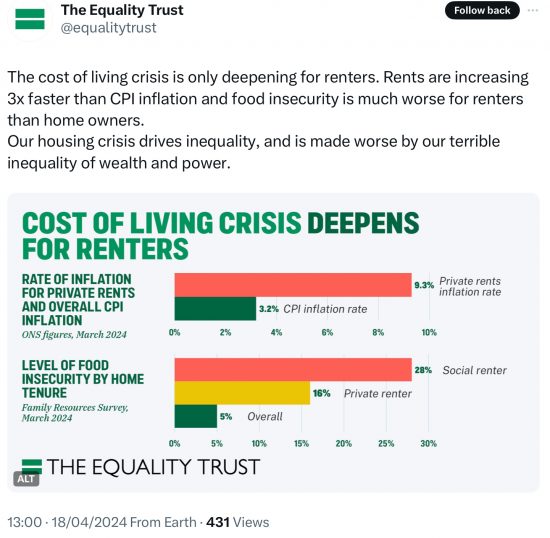 There is one organisation to blame for this horrid and unjustified as well as unjustifiable resulting increase in inequality in the UK, and that is the Bank of England, whose interest rate policies directly impact rental housing costs and so the increasing poverty of those who live in it.