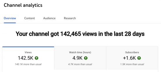 And the viewing hours are good: YouTube requires a channel to have 4,000 hours of watch time in a year before a channel can be monetised. We did that in the last month, and more besides.