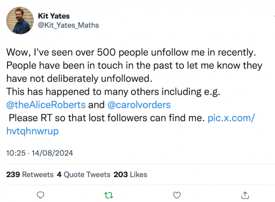 Let me ignore for the moment the fact that some people are most definitely leaving. My follower number has fallen as a result, without a doubt.