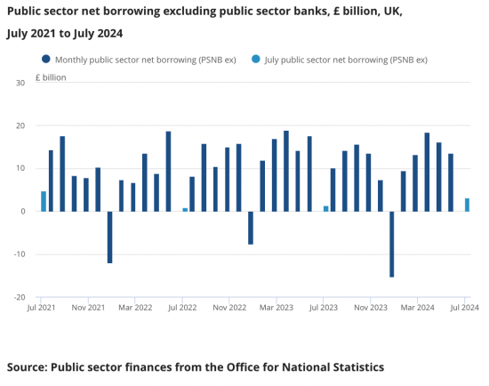 July borrowing was up very slightly. The cycle continues and will continue since Rachel Reeves is now pursuing Tory policy. There is little to add, barring one thing.
