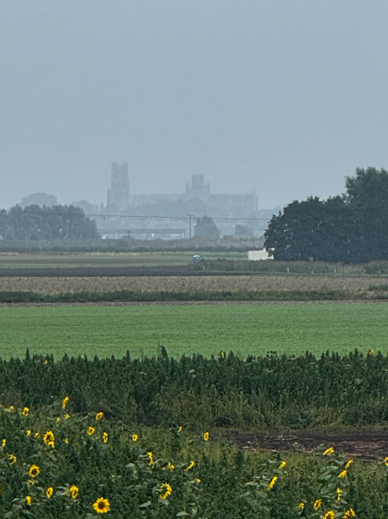 Ely Cathedral is about three miles away in that photo. The Rive Cam was to my left when taking the picture. The sunflowers are beloved of goldfinches, for whom it seems they are grown.