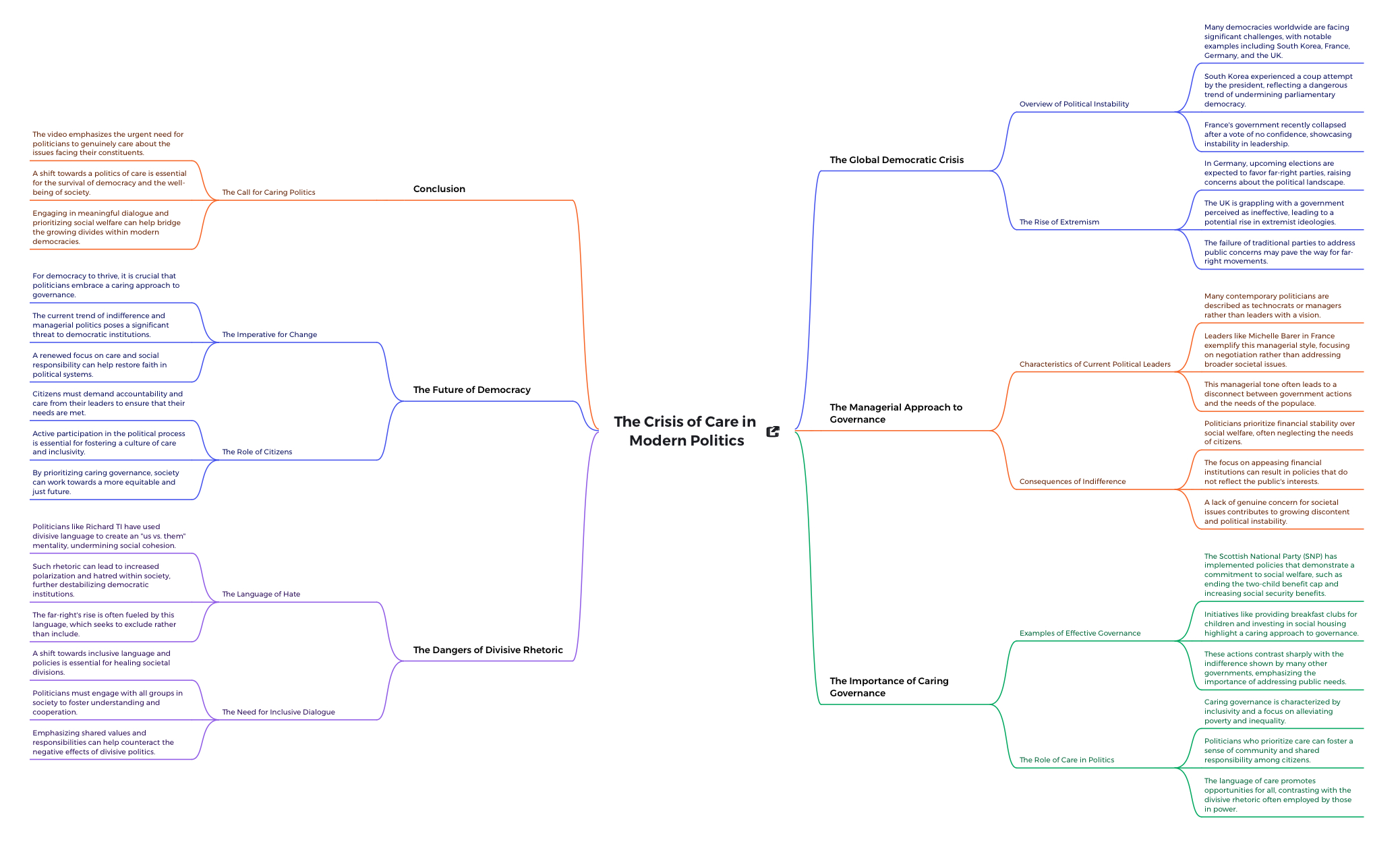 This reveals that there are, in effect, six big ideas or chapters in the video, each with two main sub-headings (bar the conclusion) and then with arguments in support of each.