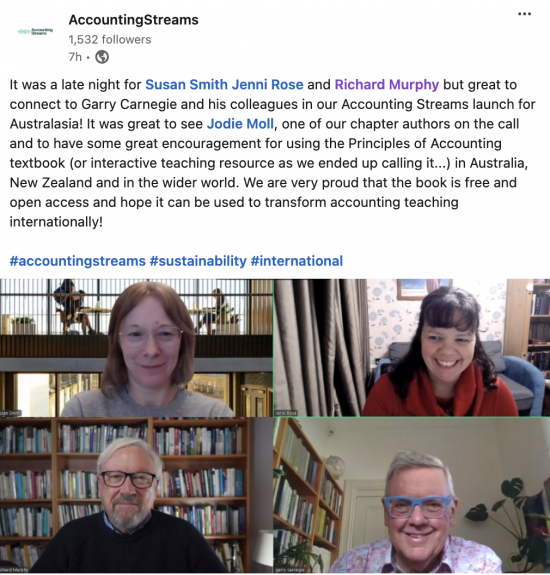 I took part in the Australian launch of the Accounting Streams project last night. The event went well, and I am grateful to all those who took part.