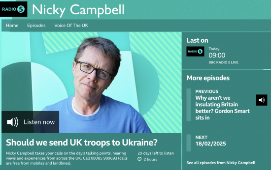I took part in a discussion on defence spending during the Nicky Campbell Show on BBC Radio 5 this morning, and contrary to most of my media experience of late, this went really well.