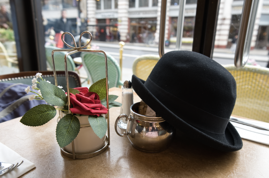 This was taken during coffee in Piccadilly. The bowler is my wife's, who was having a Diane Keaton in Annie Hall kind of day.
