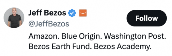 Unsurprisingly, Jeff Bezos of Amazon and the Washington Post still uses Twitter: