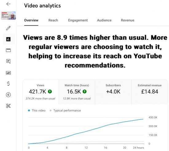And now another confession: at this stage the data from YouTube on revenue is almost entirely random. After 24 hours, they give no real clue as to what it might, or might not earn. It will be more than the figure shown.