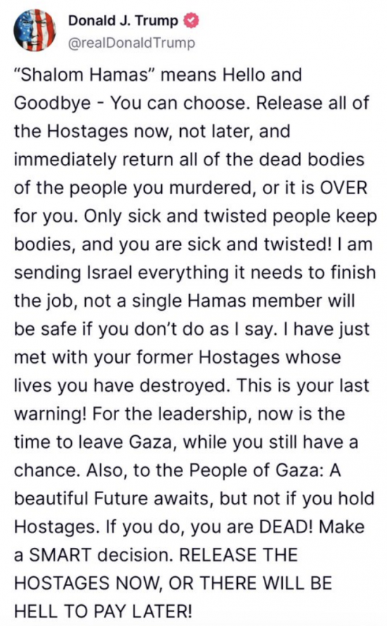 How many innocents is Israel going to kill putting that plan into action!? What a thing to say – but Mar a Lago is a long way from Gaza. Maybe Trump should go so that he can smell the rotting bodies of the innocent int the rubble?
