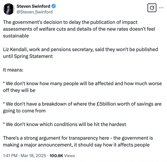 I also know there will be more reassessments for those claiming PIP and other benefits.