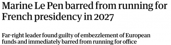 The contrast Is stark between the French dealings with Le Pen (and the Romanian dealings with their Russian-backed candidate, Calin Georgescu) and the inability of America to deal with its Orange Felon. It seems that the US ‘separation of powers’ is worth nothing.