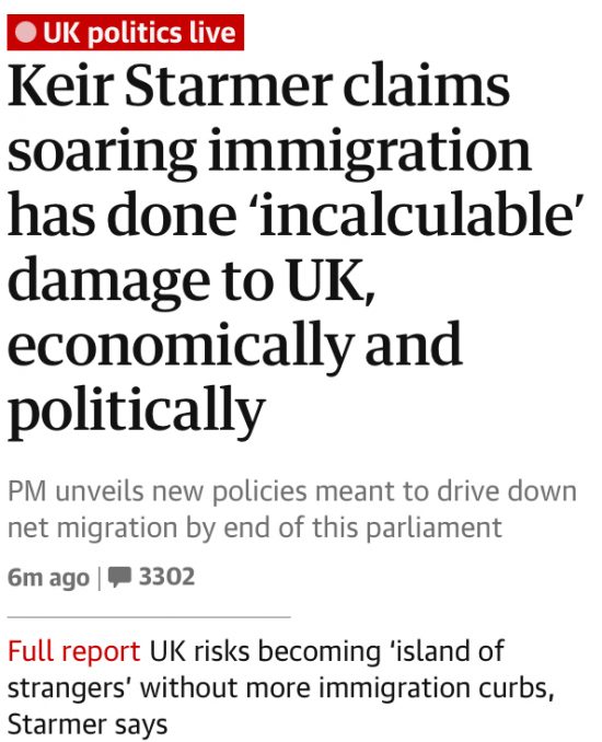 These are the words and actions of a charlatan. That describes Starmer. It also describes you. It is the “I’m not a racist, but the Tories allowing all these migrants in caused incalculable damage” excuse for your prejudice. You cannot, as you claim, differentiate the supposed damage from migration policy from migration.