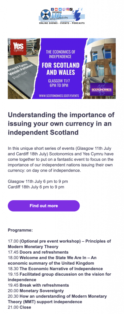 I want to highly commend YesCymru. They are a brilliant grass roots non party linked campaign group for Welsh independence. They are very impressive.