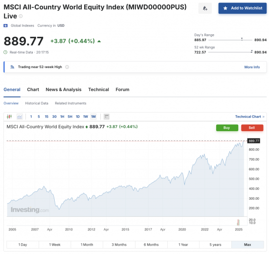 This is the chart of the MSCI All-Country World Equity Index from Investing.com: