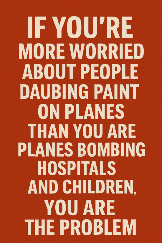 I understand the planes are so frightened that they are refusing to take off until every member of Palestine Action has been locked up. Seriously though, the words terrorism and terrorist organisation have become completely devoid of real meaning because they are politically defined to suit the party in power.
