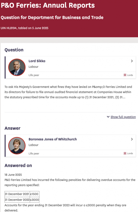 Agreed, John. A £3k fine is a mere bagatelle to a huge company like P&O and only incites them to repeat their lack of audited accounts year after year. Why not a fine commensurate with the company’s financial status?