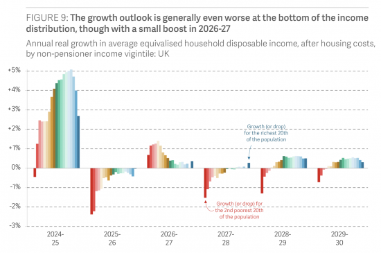 The poorest tenth of families are expected to be £1,500 a year worse off in 2029–30 than they were in 2019–20. They are the biggest losers over the decade.