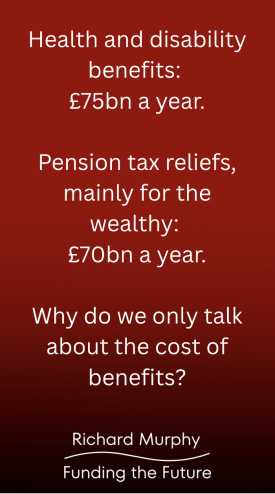People who receive pension tax reliefs by and large bank that cash support as savings which is economically dead or at least sleeping. The money goes nowhere. People who receive universal benefit, or PIP, or other social security benefits by and large spend that cash on goods and services to support themselves. Whether that is groceries or clothing or rent. That is all GDP.