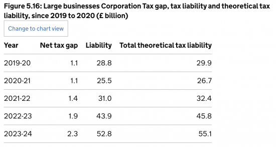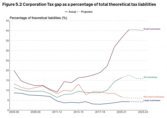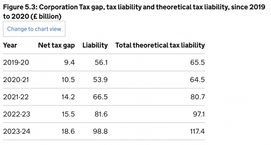 This data is fascinating because it directly contradicts a great deal of data in HM Revenue & Customs' own tax gap information on the corporation tax gap.