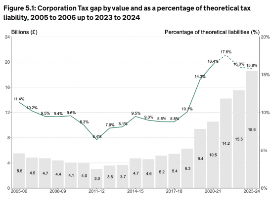 Importantly, this makes the large business corporation tax gap bigger than the small business corporation tax gap, which is £14.7 billion. They have placed much emphasis on that small company figure in their recent reports on this issue. They appear to have ignored, or misstated, the bigger issue.