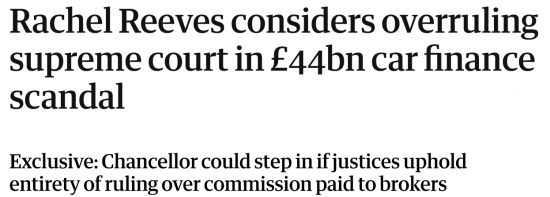 Think of it; financial institutions commit get taken to court over misselling of car loans. So fraud then. And a ‘progressive’ labour party (ha ha ha) wants to step in and overrule the workings of the law.