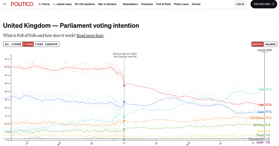 This was the view from Politico's most recent UK national poll tracker:
