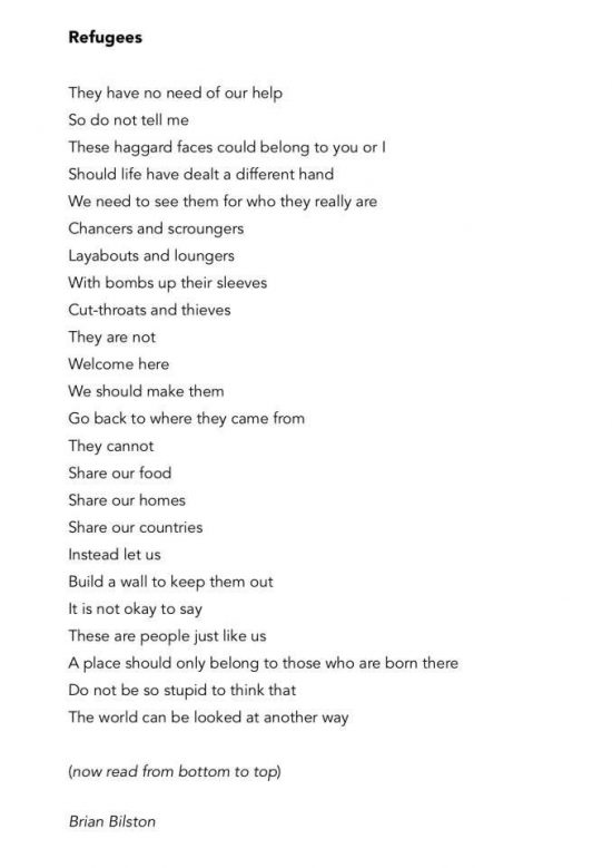 Whenever I read a poem about refugees, I think straight away of the poem inscribed on the Statue of Liberty in New York Harbour: