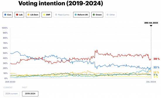 This is the latest YouGov polling data chart for the period since the general election in the UK: