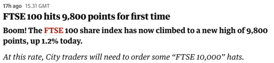 Then note that this means that the FTSE 100 has risen by 20% this year - something that is impossible to sustain.