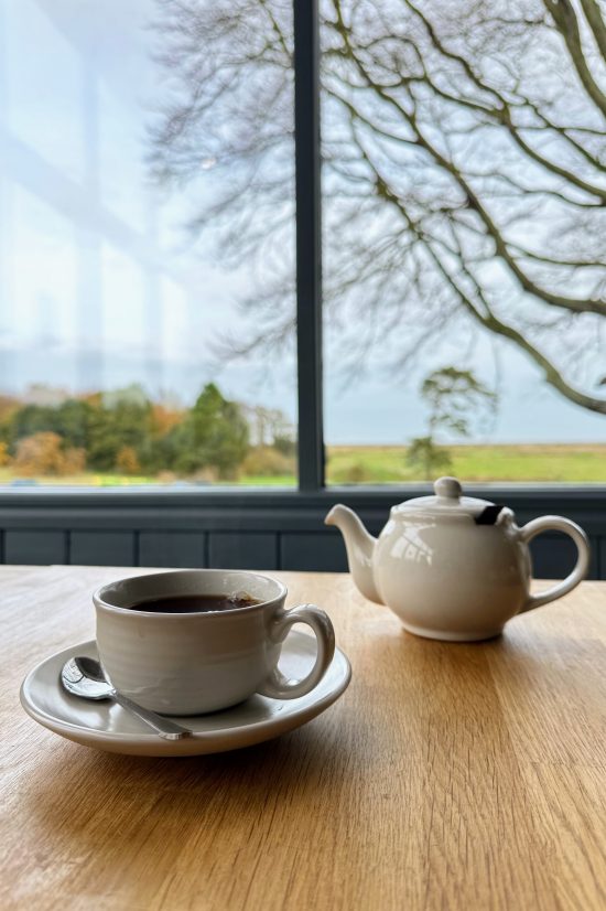 I took this photo yesterday morning as we began our journey home from holiday. It was taken at the Wiveton Hall Cafe run by the Norfolk Tea Company, looking out over the marshes to the sea. And yes, I do drink tea, not least after already enjoying two double-shot black Americanos in a morning. Their tea is very good: some came home with us.