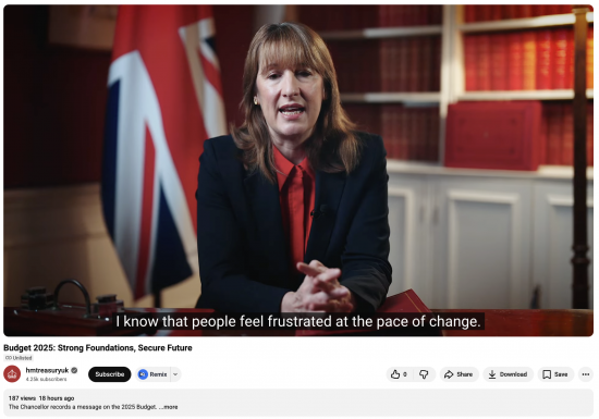 But one thing I already know. Yesterday, Rachel Reeves put out a YouTube video on the Budget. This is a screenshot: