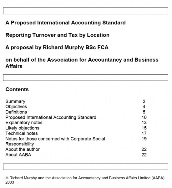 And if he wants to know how you campaign, you start with the details. Take this, for example, which was the first ever publication on country-by-country reporting, written by me and issued in January 2003 by the Association for Accountancy and Business Affairs website run by Prem (now Lord) Sikka. This was a complete plan for what country-by-country reporting would be, written as an International Accounting Standard so no one could be in doubt what was meant, and why it was deliverable. That is how to campaign. That is why we got country-by-country reporting: the devil was always in the detail, and there was never any doubt as to what that was. Why is it so hard to work out that this is how to win?