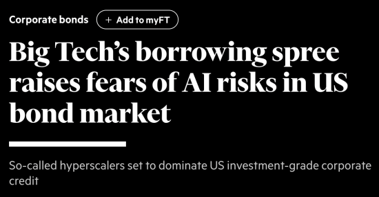 That shift means bond investors, who have previously been largely insulated from shocks in the tech-dominated stock market, are suddenly realising this is no longer the case. The risk of contagion is spreading rapidly, as indicated by the scale of new tech bond issues, as this chart suggests is happening.