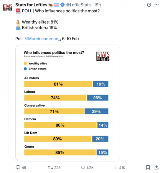 What's the problem with British politics? The public seems to know, based on the opinion polling reflected in this Tweet: