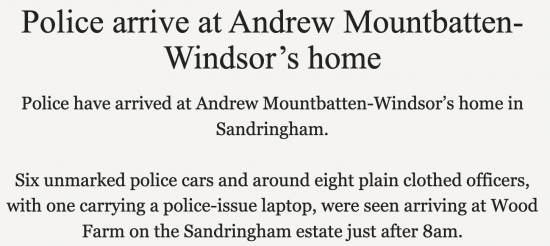 So Charles has authorised this. The police would not be able to act so publicly without his okay. However, even though he removed Andrew’s titles, it’s not possible to arrest and prosecute Andrew without bringing down the whole house of cards. Interesting times!