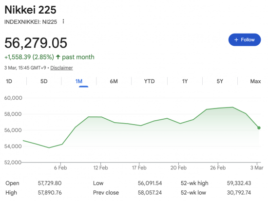The Nikkei share index in Japan has fallen again in what we think of as overnight trading: