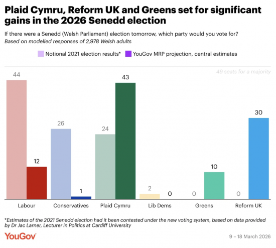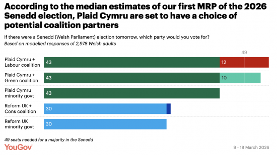 They have undertaken an MRP poll to suggest the likely result of the Senedd election in May. Their findings, based on the new proportional representation system in Wales with the multi-member constituencies that I prefer, are as follows: