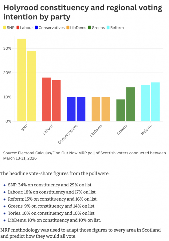 Politically, this difference is very apparent. This is the latest opinion polling data for the forthcoming Holyrood elections, from The National (of course):